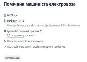 Оголошення ми знайшли на сайті з пошуку вакансій.